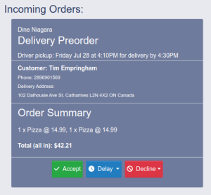 Delivery by Dine Niagara Orders - Automatic Dispatch