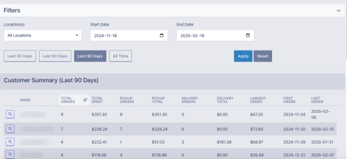Using this summary you can quickly identify customer ordering patterns, find customers who may have been regulars who haven't ordered in a while, and more. Using the filters and sorting you can review your customer order pattern in many different ways.