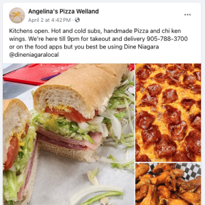 For example, Dine Local has set up our own Facebook Group in the Niagara Region at https://facebook.com/groups/dineniagara which is available to restaurants in Niagara who are on our platform to post specials and information. Look for the groups in your community with strong reach and membership.