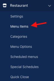 To access the Menu Management page, go to Restaurant -> Menu Items in the left menu when you are logged in to the admin panel as manager.
