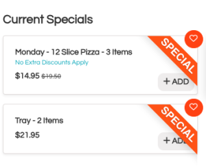 You can set your special pricing to be either the same as your regular price (ie. a special item that may only be available at specific times) or at a discount from the regular price. If the special price is the same as the regular price on the menu item, it will be listed as normal (see examples above) indicating a special offer, but not necessarily a discount from a regular price.